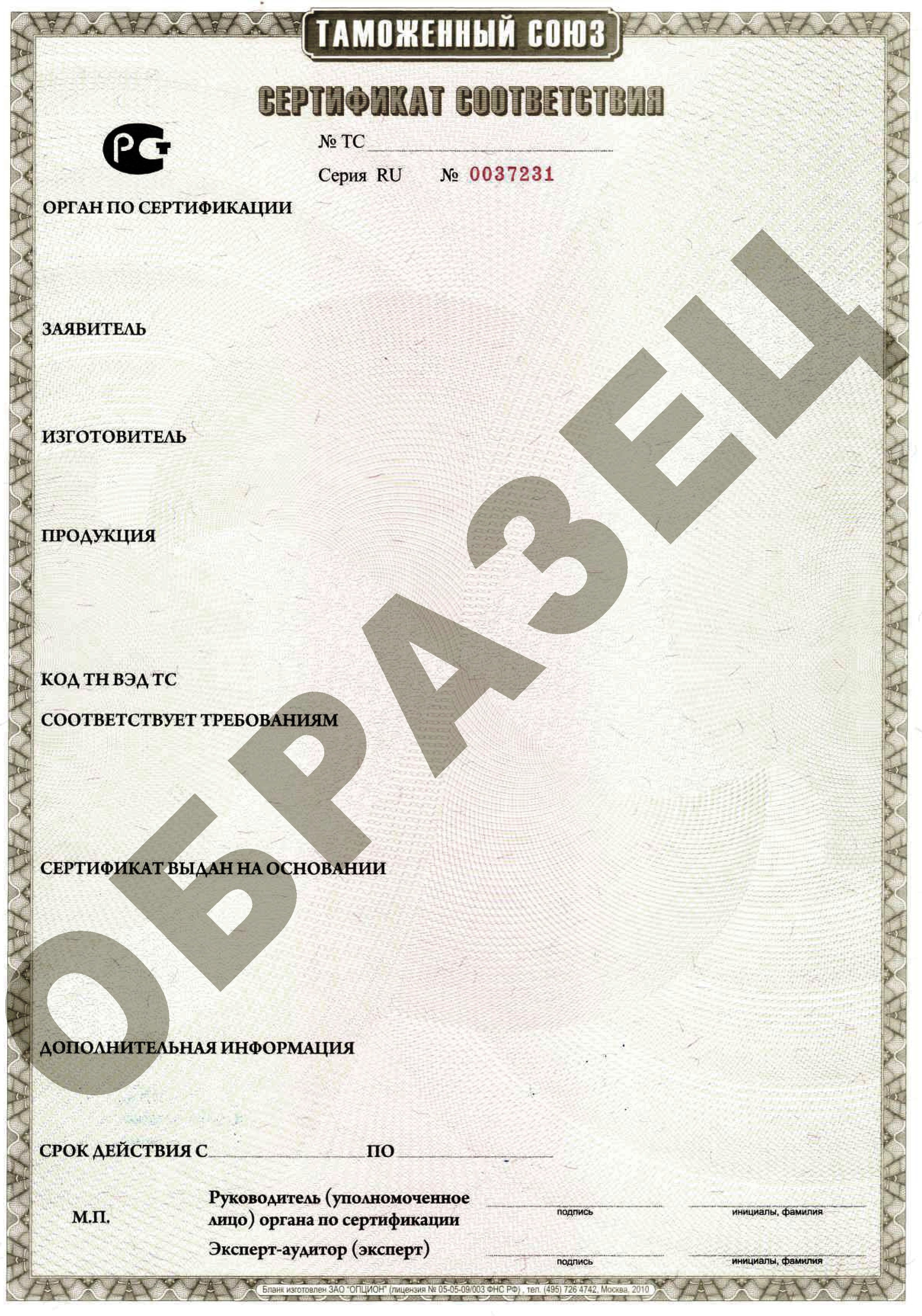 Сертификат соответствия Технического регламента Таможенного Союза